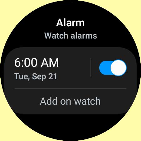 On the Samsung Galaxy Watch 4, you can set up the alarm using the Alarm app. You can set one-time or recurring alarms.