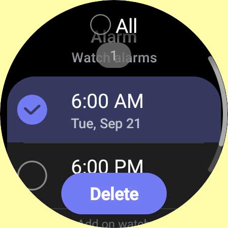 - To delete an alarm, press and hold the alarm and tap Delete.
