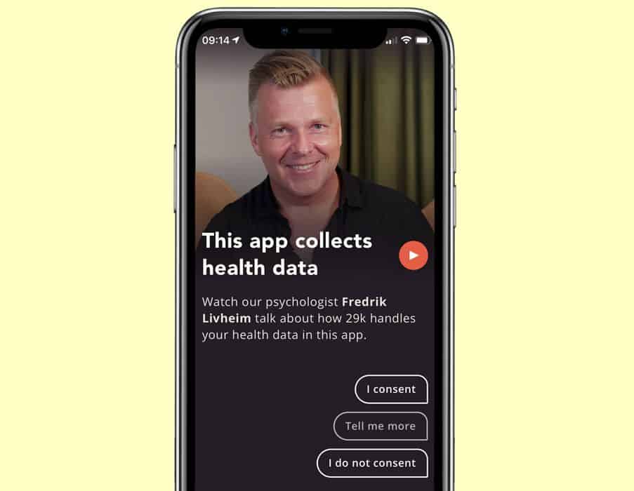 One of the first steps you take with 29k is giving your informed consent to participate and voluntarily share your data with the app.