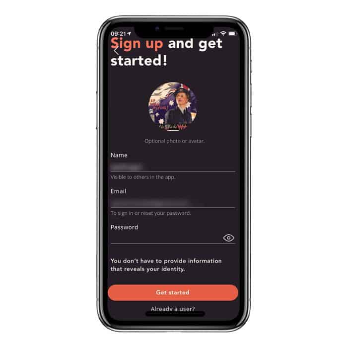 Set a username, assign an email address, and create a password. Only your username is visible to others.