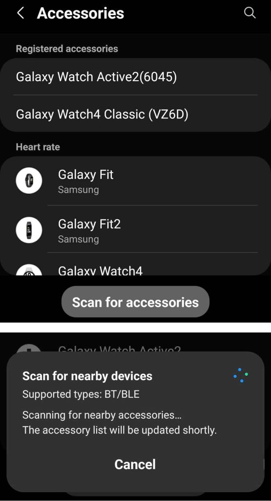 - Scroll down and tap the option to Scan for accessories.