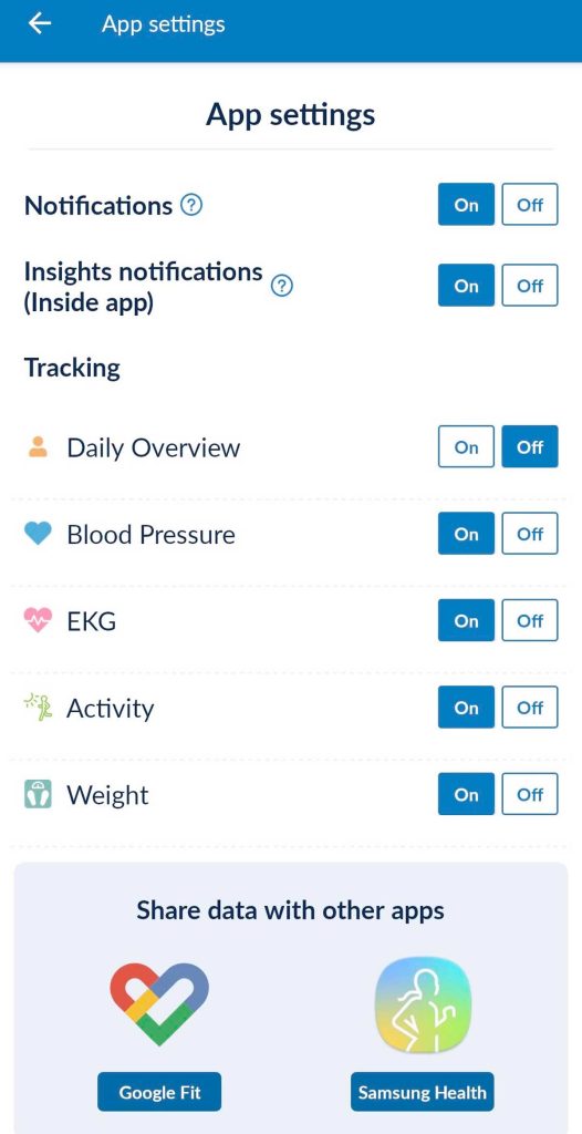 This sharing feature is likely why you’re here in the first place! It has an impressive list of other apps to which the Health Mate app can connect.
