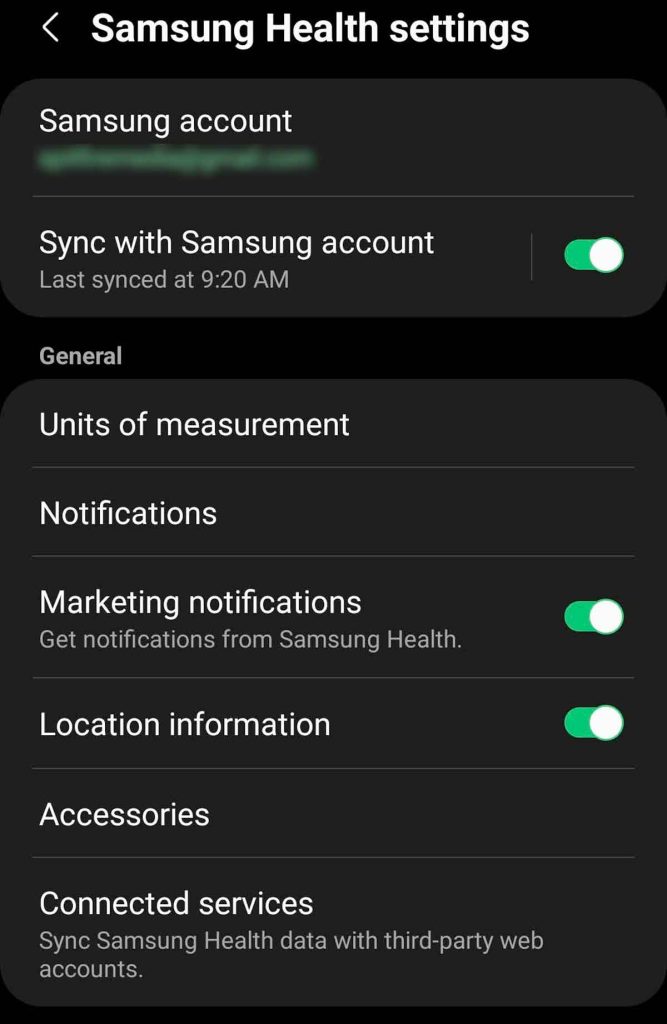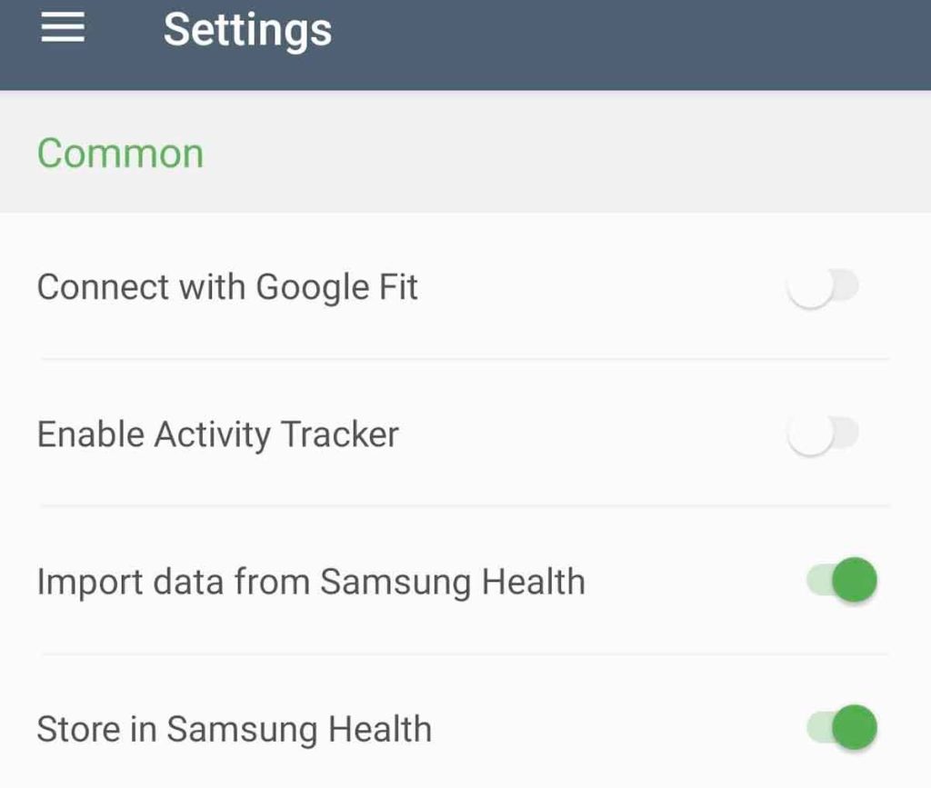 - Under Common settings, look for Store in Samsung Health and toggle it on.