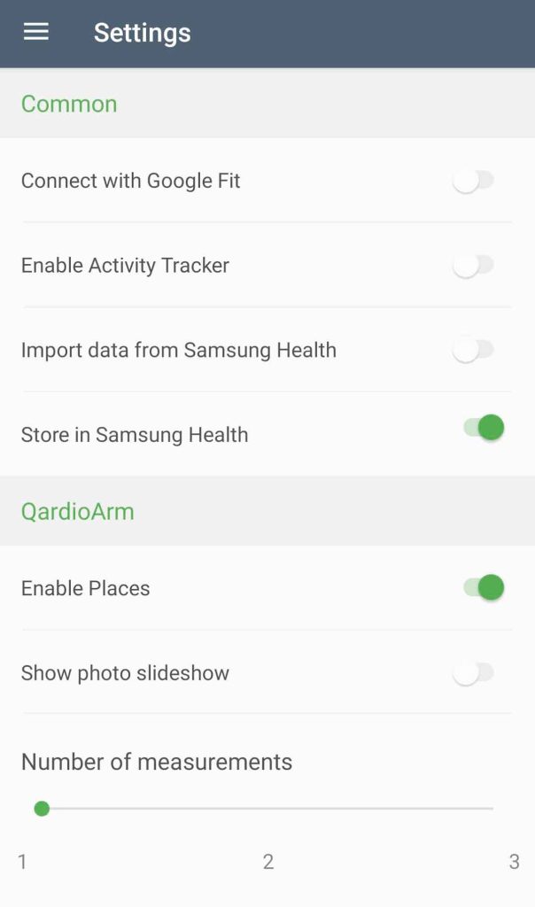 - Back at Settings, toggle on Import data from Samsung Health if you want information recorded in Samsung Health to sync to the Qardio app.