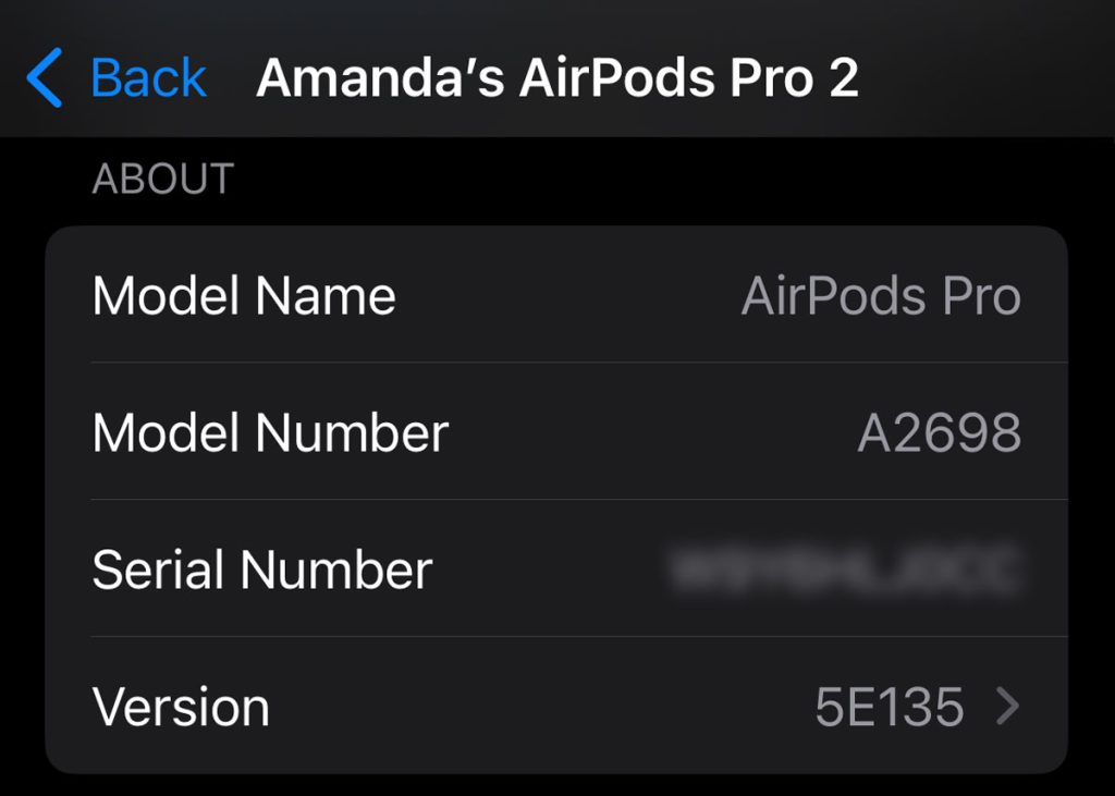 You can check your installed firmware by going to Settings > AirPods. Scroll down to the About section and review all your AirPod information, including model number, serial number, and firmware versions. It’s a handy place to check all your AirPod info.