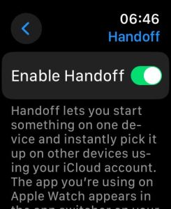 - Look at your Handoff settings on your iPhone, Apple Watch, and all your Apple devices. Go to Settings > General > Handoff on your Apple Watch (or Settings > General > AirPlay & Handoff on your iPhone or iPad.) Toggle Handoff on. This feature uses your Apple ID and iCloud to allow you to start playing something on one device and instantly move it to another.