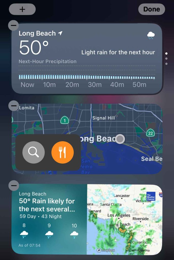 - Tap Done to save your new widget configuration. If you want to add more widgets, press the plus sign (+) and tap Done.
