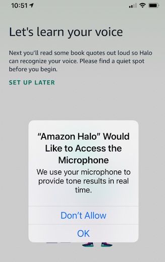 Concerning privacy, it was comforting to know that the app stores only your voice. When you set up Amazon Halo’s Tone analysis feature, you first set up a Voice profile id.
