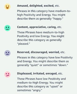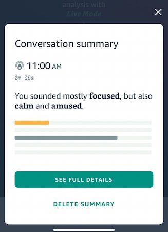 Amazon’s tone analysis algorithms then process your voice on their servers, and you are presented with results that give you a glimpse of how others might perceive you from the tone of your voice.