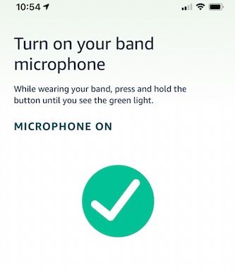 - You see a green light on the side of your band, and your mobile device shows ‘Microphone On” message on the app