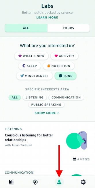 The Lab feature on the Amazon Halo app is an excellent repository of information and tools to help you with various improvements you want.