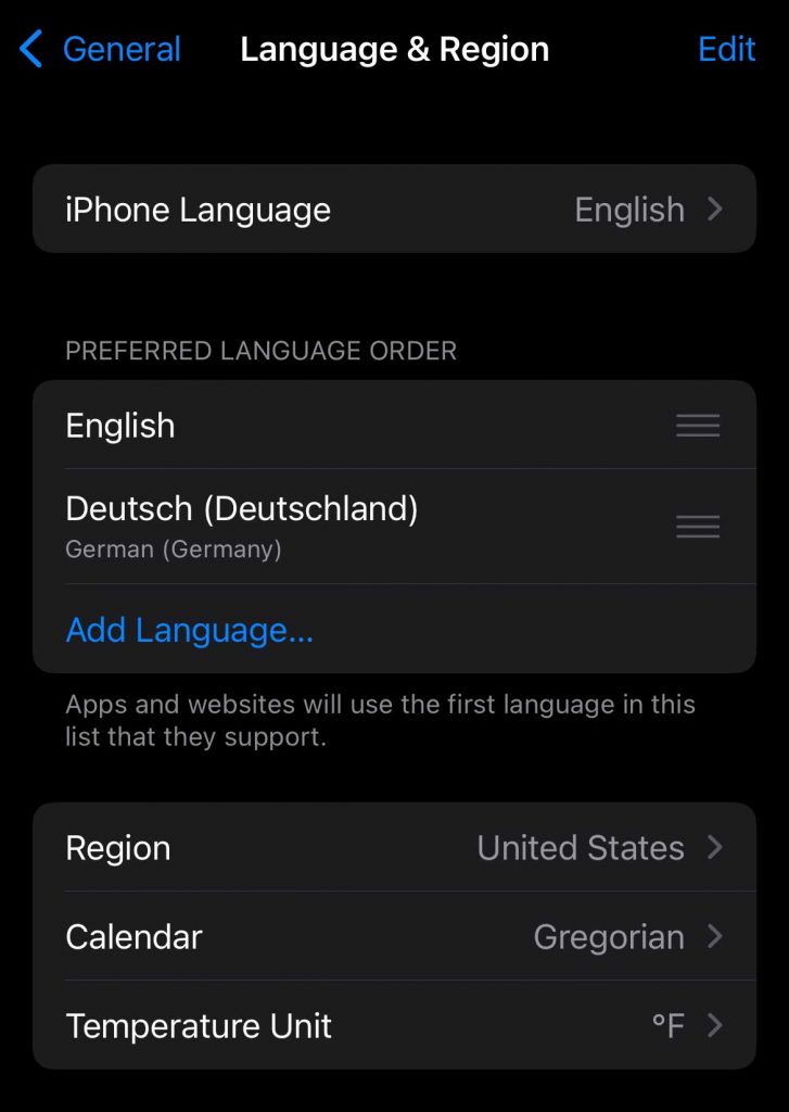 - Tap Language & Region. Verify the information is correct and matches what’s on your watch.