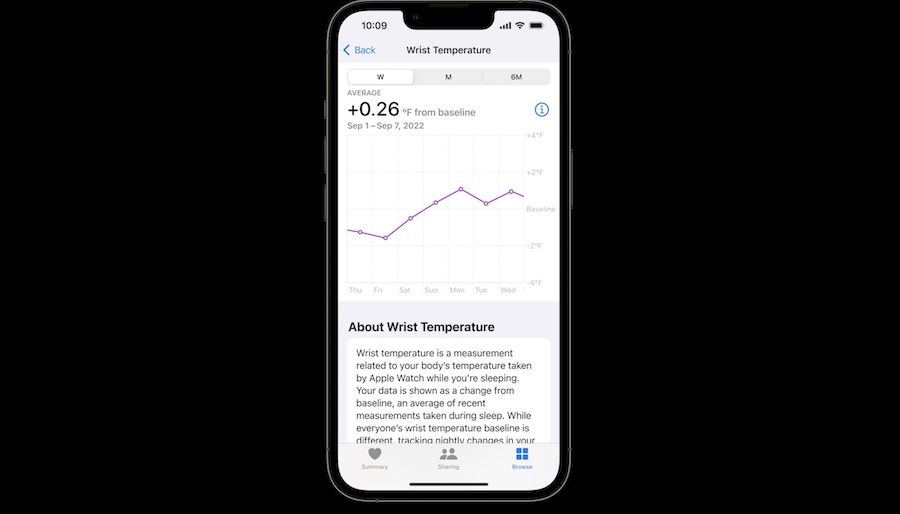 Using the health app, you can see nightly temperature changes. Users will be notified about cycle deviations automatically. The