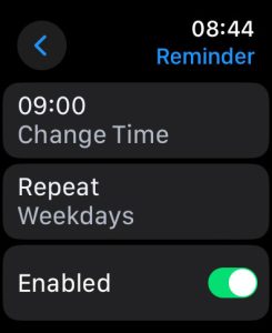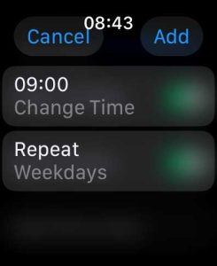 - Pick the time and repeat frequency. Then tap on Add. This sets up the Breathe Reminders on your Apple Watch.