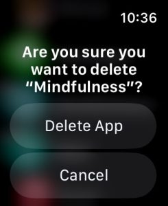 - On your Apple Watch, locate the Mindfulness app and press and hold it until you see it wiggle with an x in the top corner of the icon.