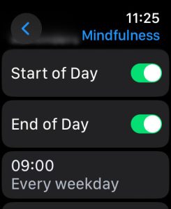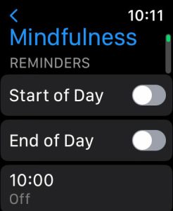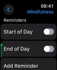 - On your watch, open Settings > Mindfulness and toggle off Start of Day and End of Day.