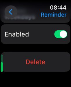 - Tap any custom reminder and toggle off Enabled. It shows up as “off” in your reminders list.