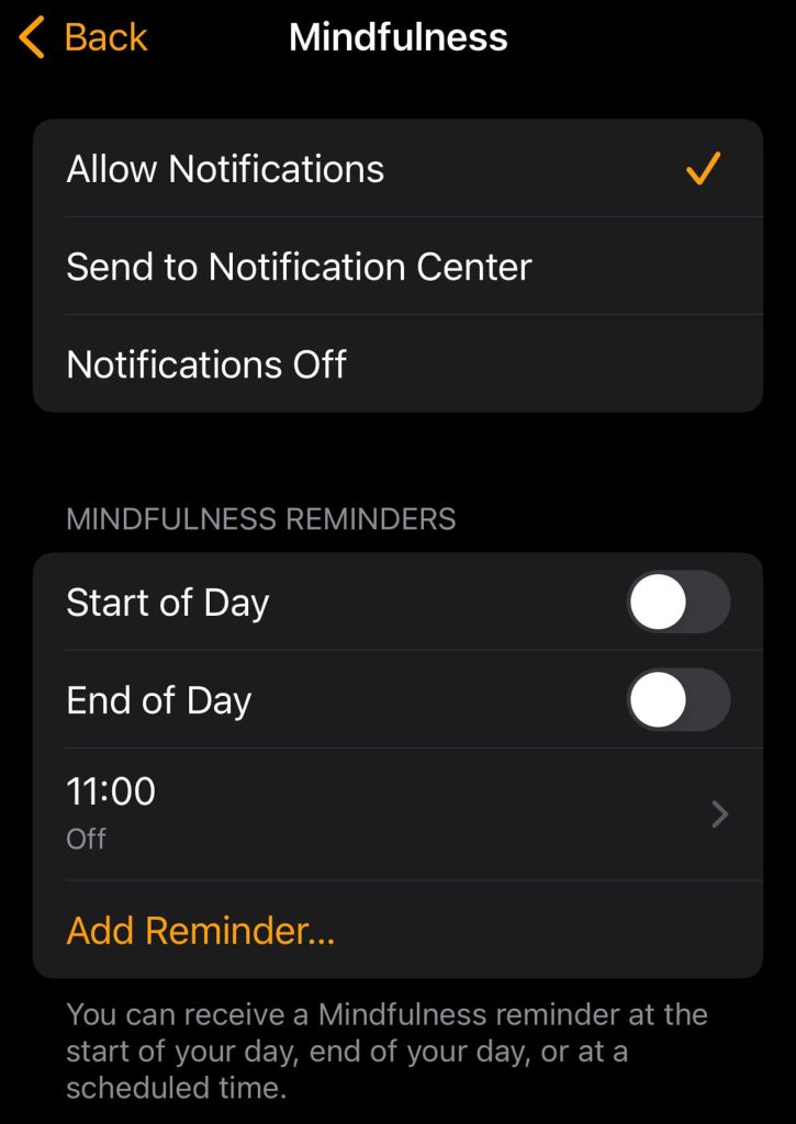 Before troubleshooting, let’s check that you turned on the breathing reminders in your Apple Watch’s Mindfulness app.