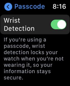 Automatic wrist detection uses the watch’s sensors to identify when you wear (or don’t wear) your watch on your wrist. And when you use a passcode, automatic wrist detection also keeps your watch unlocked while you wear it and immediately locks it when you don’t.