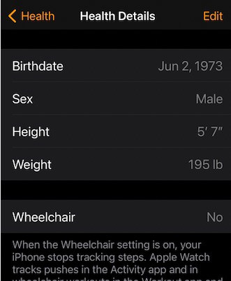- Update the health profile information to correct information if necessary by tapping on ‘Edit’ and then updating the info.