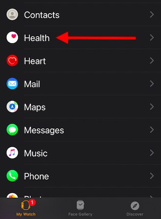 - Lastly, from the Watch app on your iPhone, tap on Health.