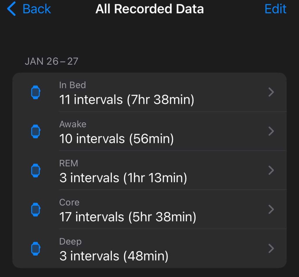 - If you don’t see any recorded data listed, run through the steps to set up that functionality again. For example, if your Apple Watch isn’t showing any sleep information, run through the sleep set-up again.