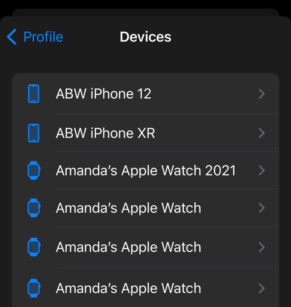 - You see a list of all your Apple devices that ever connected to the Health app, including iPhones and watches you no longer own.