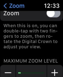 - Like the Watch app, you can also change the maximum zoom level settings. Tap the + or – symbols to set your zoom preference.