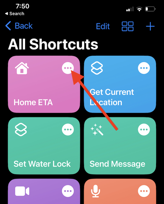 - Tap on the three dots More button at the top right corner of the Shortcut.