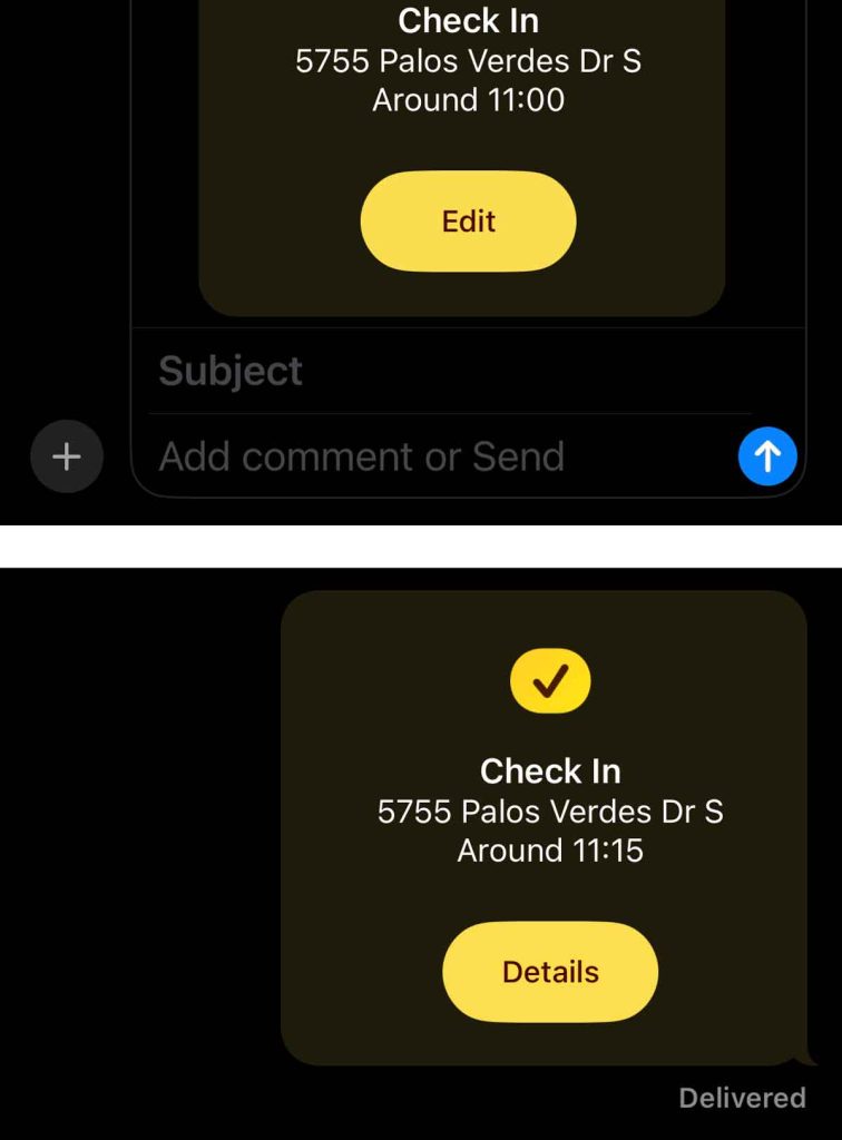 Once set up, check-in works automatically, so people no longer have to manually send a text message letting folks know they made it home or reached a certain destination. A Check-In includes valuable information like location data and the time of arrival.
