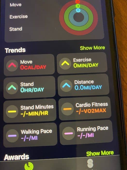 This makes it easier to visualize your daily progress along with the Trends on the same screen. Not only do you see the three main activity metrics under trends, but you are also able to see the distance, stand minutes, walking pace, running pace, and VO2 max metrics.