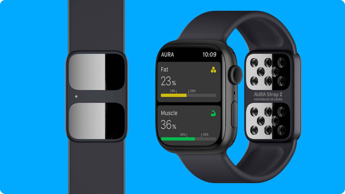 The Aura Strap 2 Apple Watch band helps users with measuring bio-impedance.