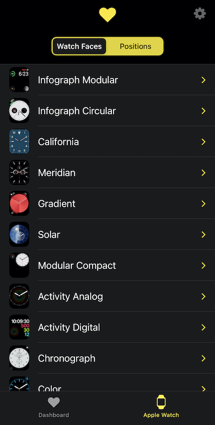 The app makes it easy on you by showing you which watch faces can use the Health Face complications and where exactly you can put them.