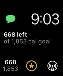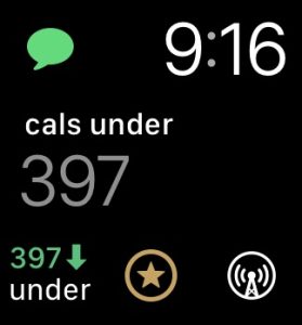 There are a couple of different Apple Watch complications for the CaliCalo app. You can get a great overall summary or a little summary icon for your daily net total.
