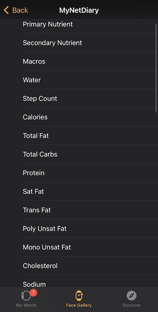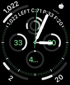 There are many great complications for tracking calories, macros, and other health-related data. Some of my favorites are LifeSum, Health Glance, and Carrot Fit!