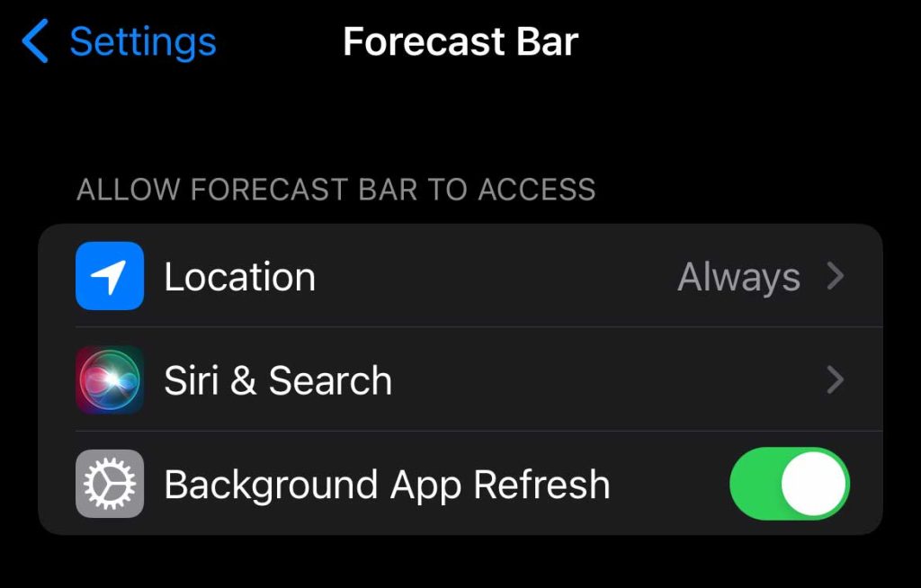 - Scroll down and locate your weather app and toggle background app refresh on.