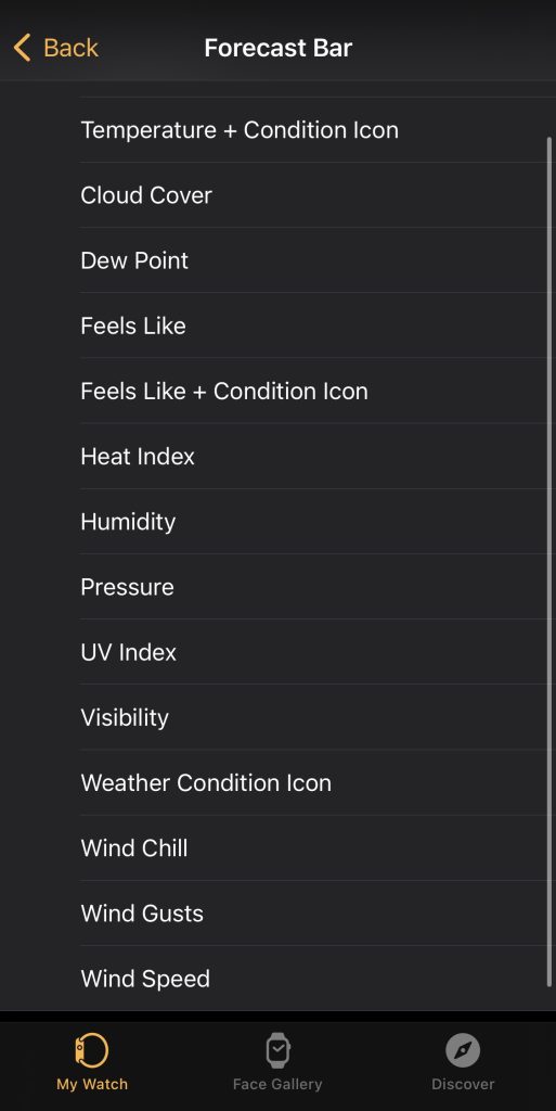 If you don’t want an Apple Watch face of just weather information, you can still choose from the many different complications available and add them to your favorite watch face.