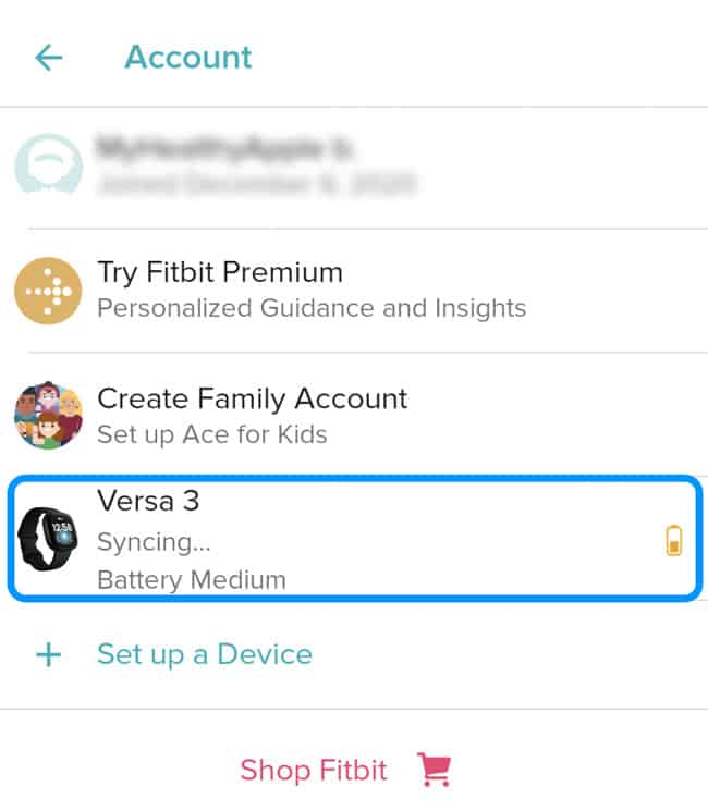 - Once removed, add your Fitbit device back to the app.
