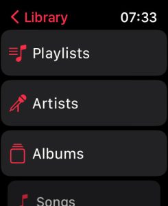 - Open the Music app on your Apple Watch. And choose your Library.