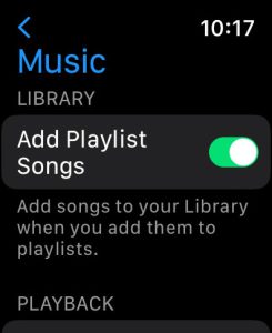 - Open Settings > Music and toggle and Add Playlist Songs.
