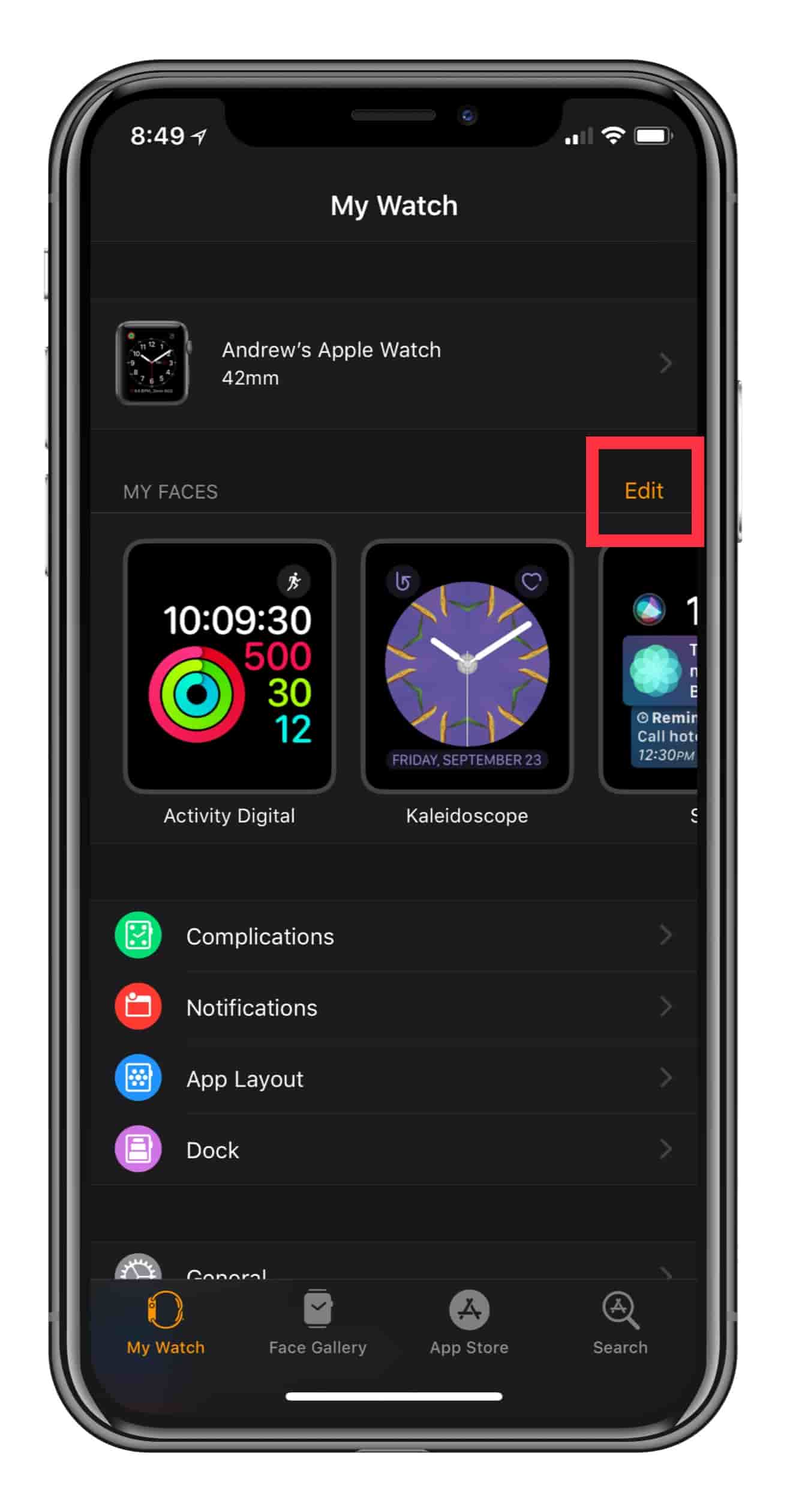 - For older watchOS, under My Faces, tap the Edit button.