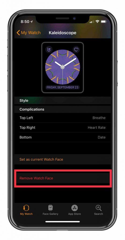 The Watch app on your iPhone also includes another method to delete watch faces:
