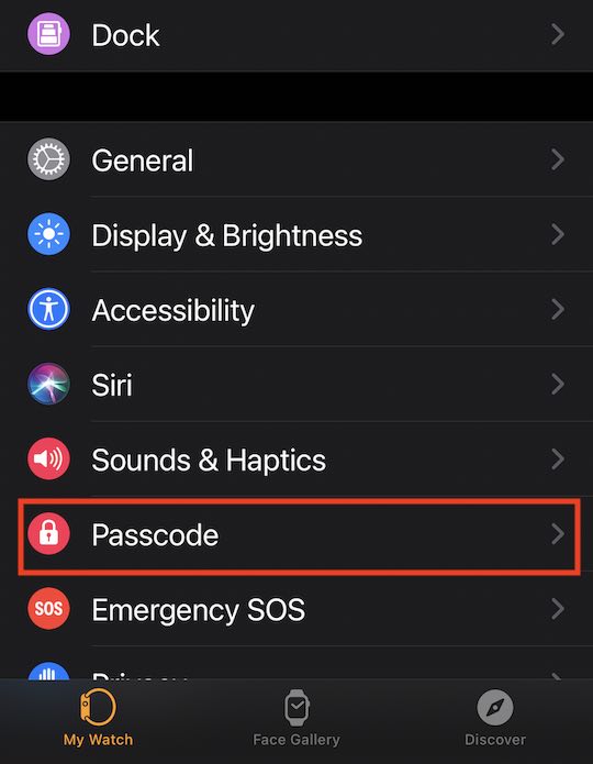 - Scroll down and tap on Passcode.