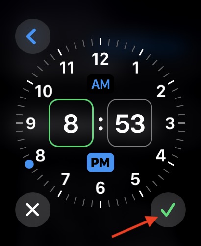 - Using the Digital crown, set up the reminder time and tap on the check mark when done