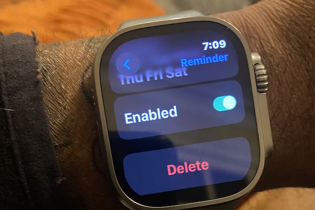 Here, you can enable or disable the reminder. You can also choose to delete a specific reminder by tapping on the Delete button.