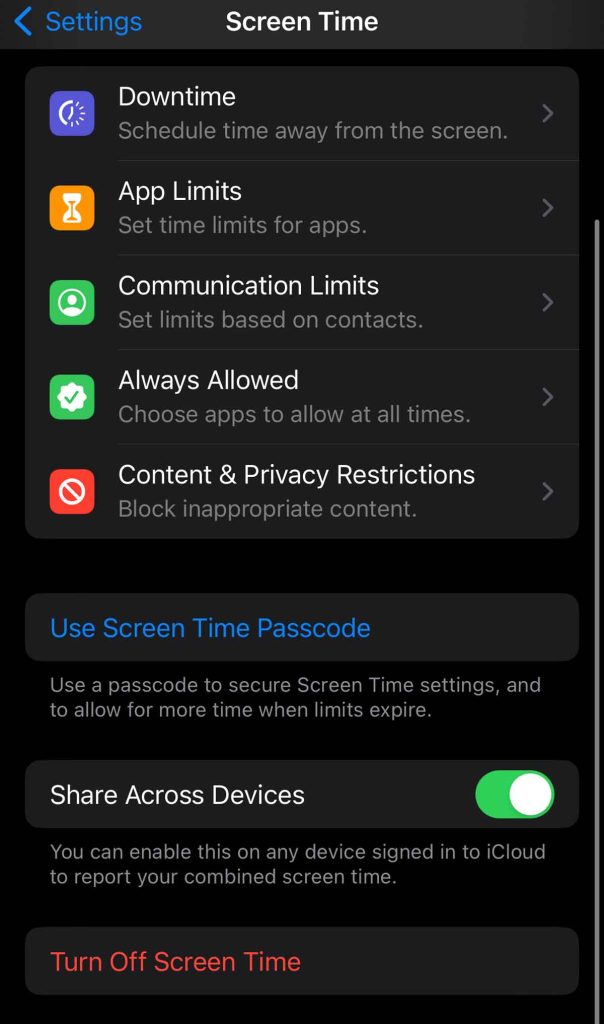 - Go to Settings > Screen Time. If you use multiple devices, toggle on Share Across Devices and then choose Always Allowed.