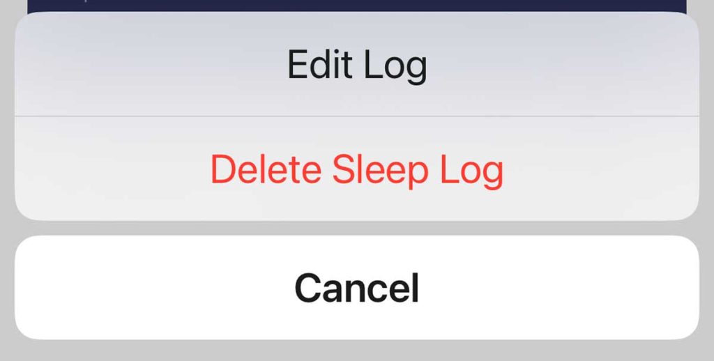 - Choose Edit Log. If you want to remove the log, tap Delete Sleep Log.