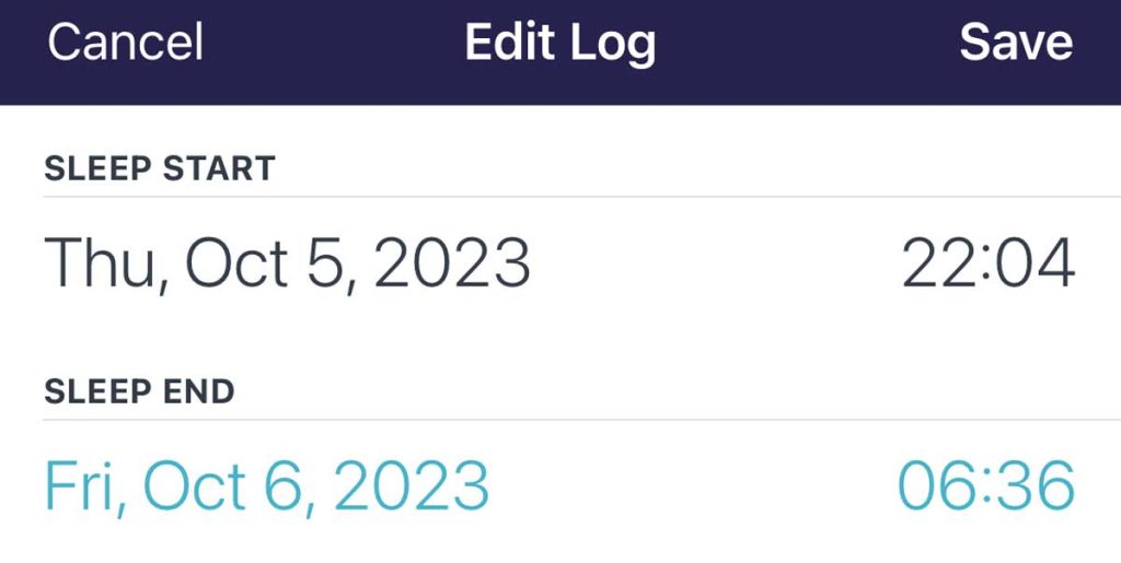And if the automatic sleep log isn’t accurate, like it says you went to sleep earlier or later than you actually did, you can also edit the log. One tip that often works when you don’t see your sleep score is adjusting your sleep start and end times by 1 minute.