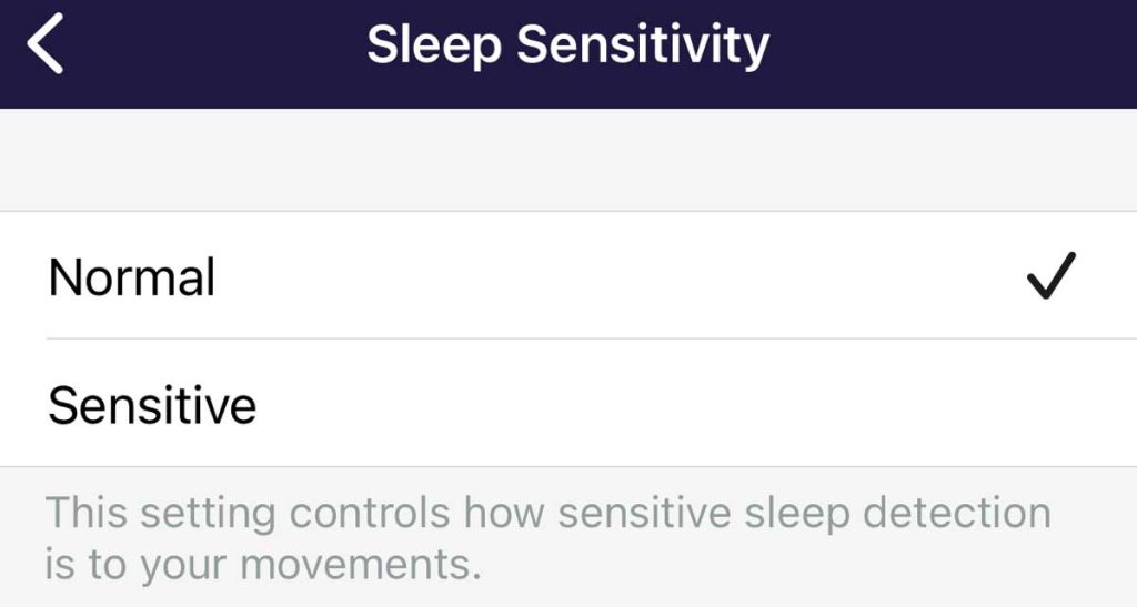 There is a sleep sensitivity setting in the Fitbit app. The default option is the normal setting.