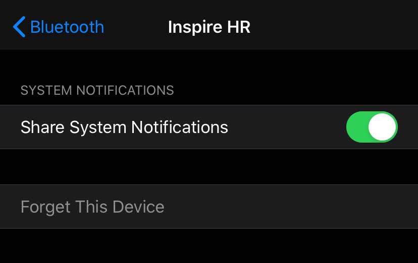 - Finally, confirm that Share System Notifications are on via your phone’s Bluetooth settings > Your Fitbit > System Notifications.
